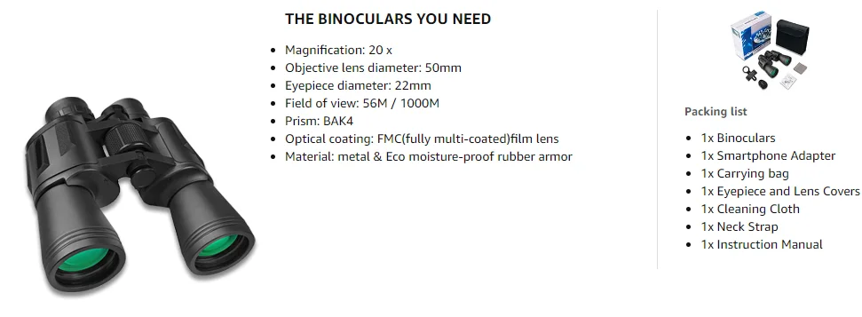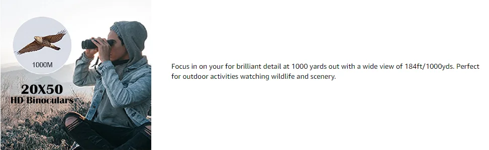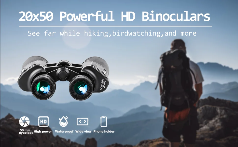 🔍20×50 High-Power Compact Waterproof Binoculars Adults Night Vision Low Light Function Hunting Bird Watching Football Matches