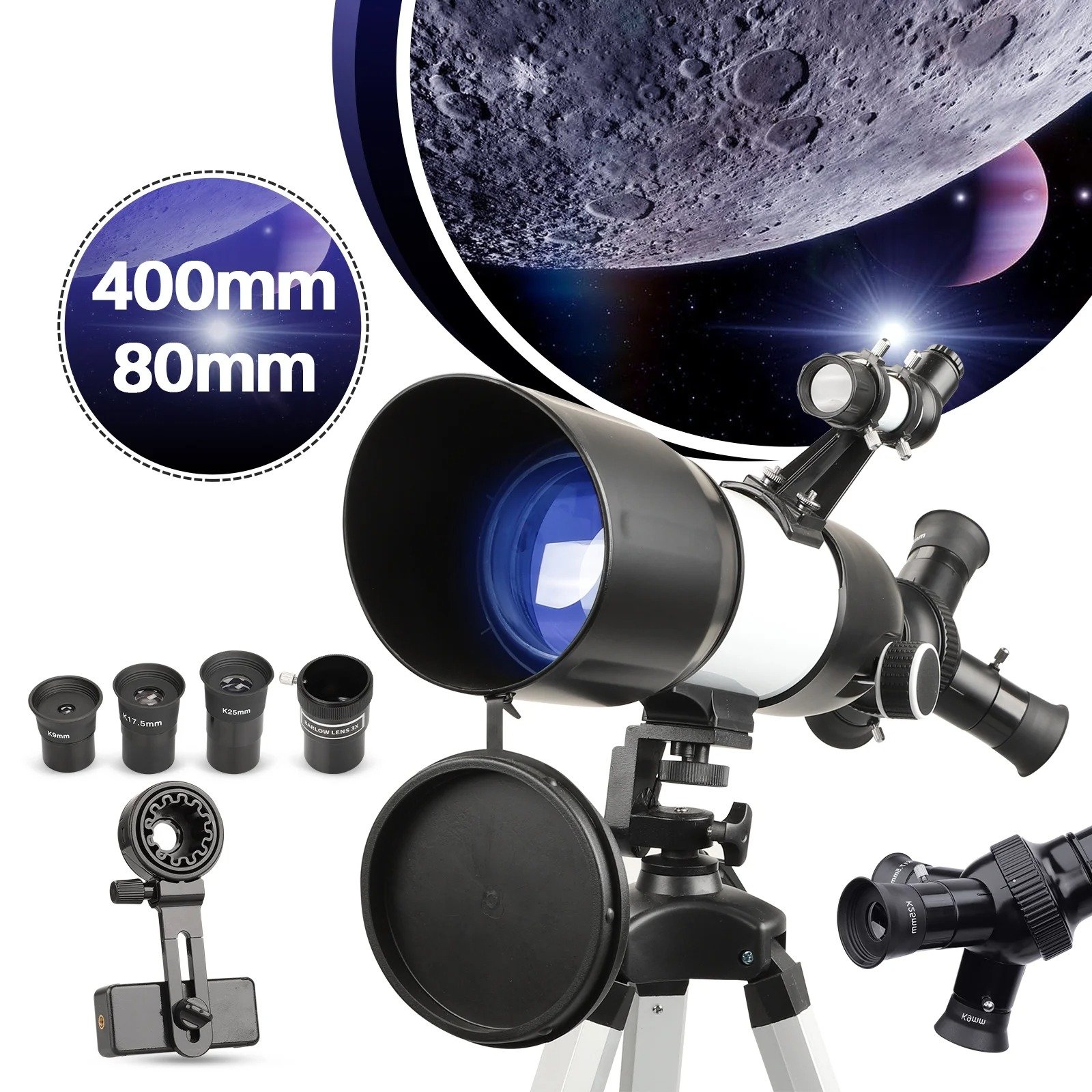 • 80mm Aperture and 400mm Focal Length: Provides brighter and clearer images compared to smaller models, enhancing your viewing experience.