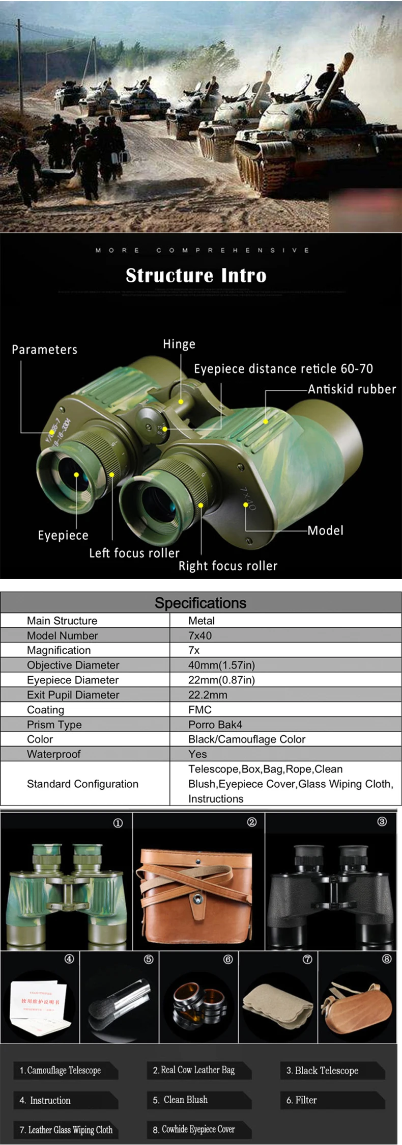 Be the first to review “Binoculars Powerful Telescope 7X40 High Quality Full-metal BAK4 binoculars wide-angle”