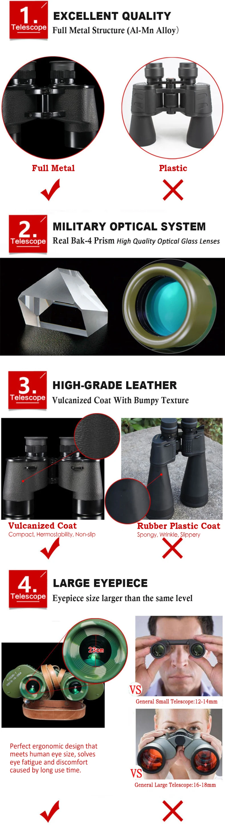 The 7X40 High-Quality Full-Metal BAK4 Binoculars are incredibly durable. Unlike regular military telescopes, these binoculars have a thicker metal body that can handle impacts 20 times stronger than gravity. This toughness ensures a long life and superior resistance in tough conditions.